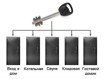 Один ключ открывает несколько дверей. Идеально подходит для коттеджей